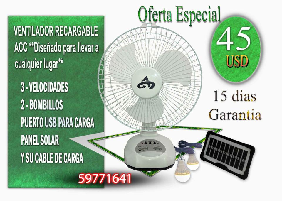 45 USD Ventilador recargable ACC: batería 9V potencia 12w más menos 3w, voltaje: 110v