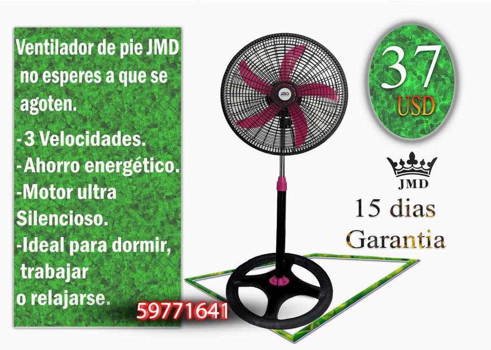 37-USD Ventilador de pie JMD Refréscate sin gastar más Oferta especial. No dejes que el calor gane ni esperes a que se agoten.
