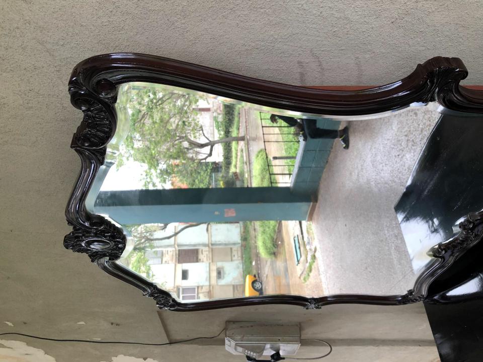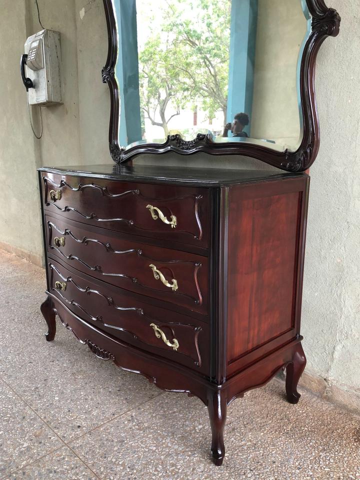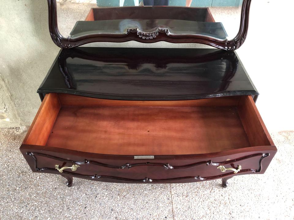 Cómoda Luis XV recién restaurada. Con su espejo original biselado muy bien conservado.