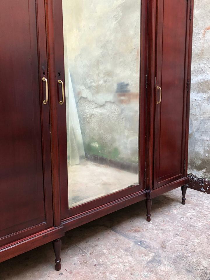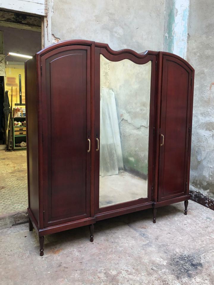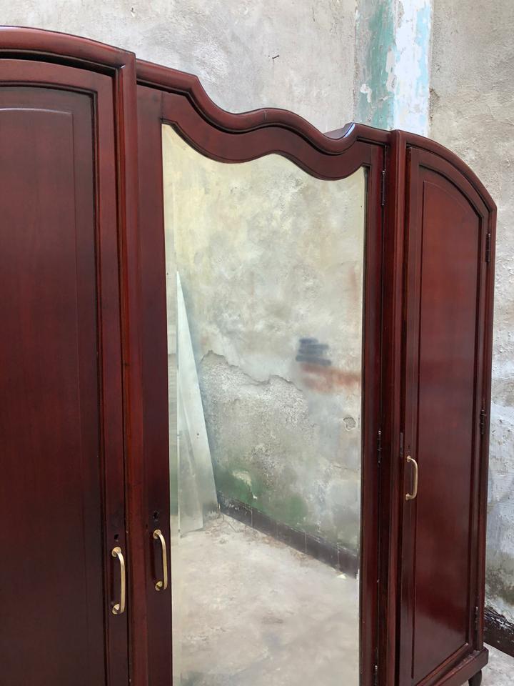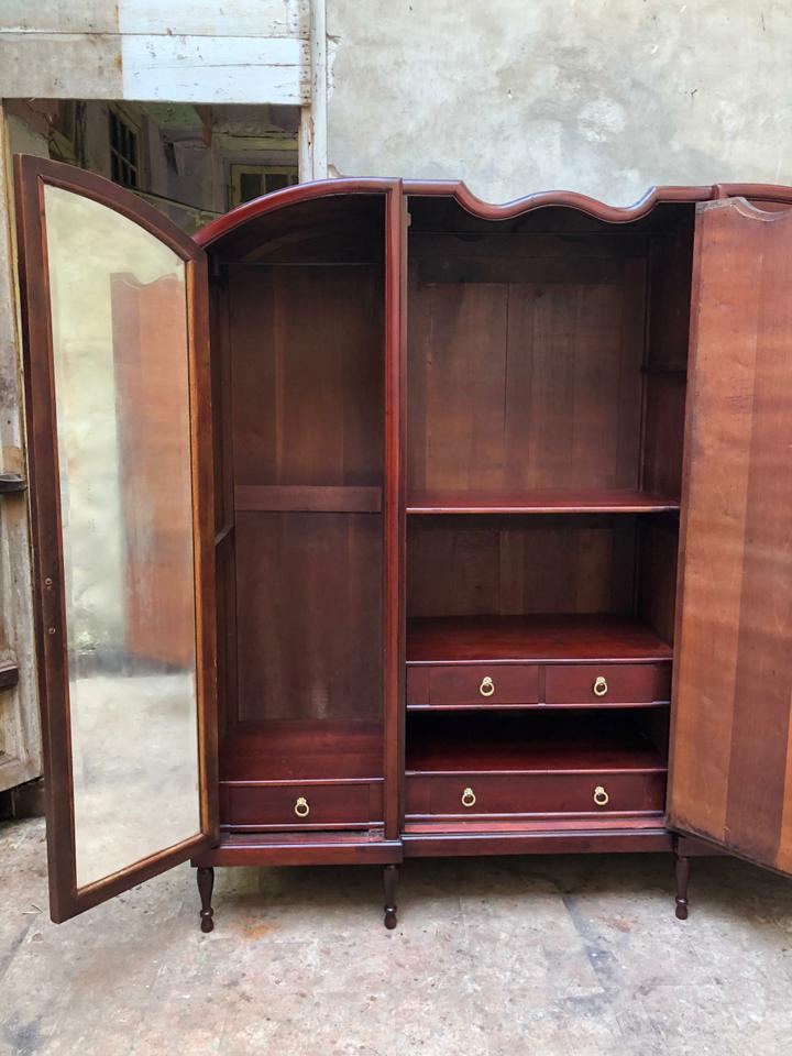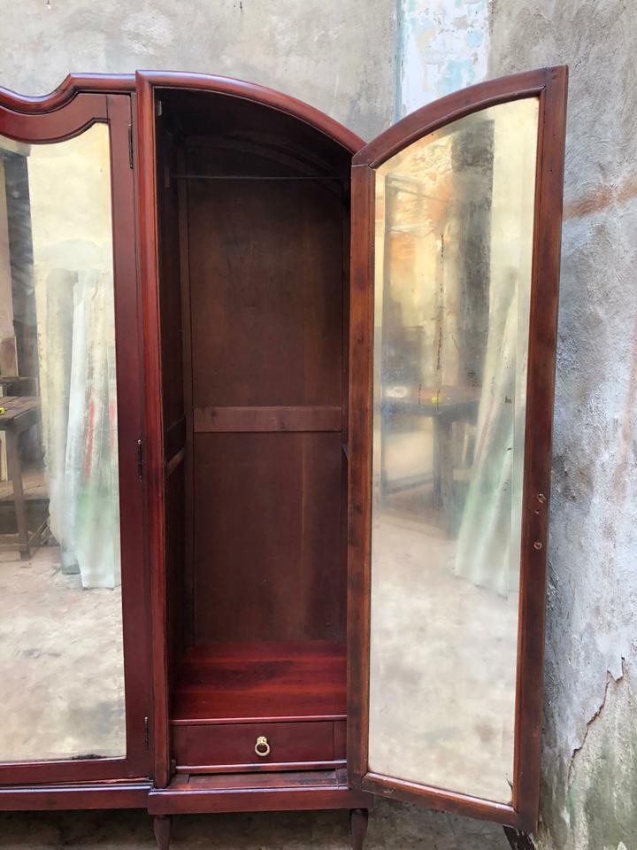 Escaparate estilo Colonial acabado de restaurar. Con sus espejos originales biselados muy bien conservados. Tiene espejos en el interior de las puertas laterales y cuenta con cinco gavetas en total y un entrepaño.