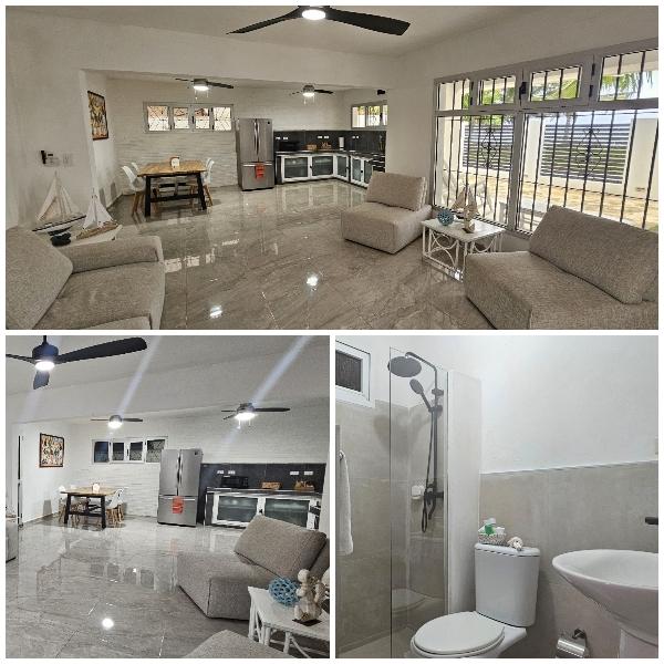 fogon de gas en la parte de atrás, en una terraza exterior para cocinar con gas y tiene fogon eléctrico adentro. Tiene lavadora y secadora también en esa terraza,2 líneas de teléfono, una para la casa y una para el restaurante,sistema de Camaras con sensores de movimiento, la casa tiene 2 playitas justo al lado a menos de 30 metros