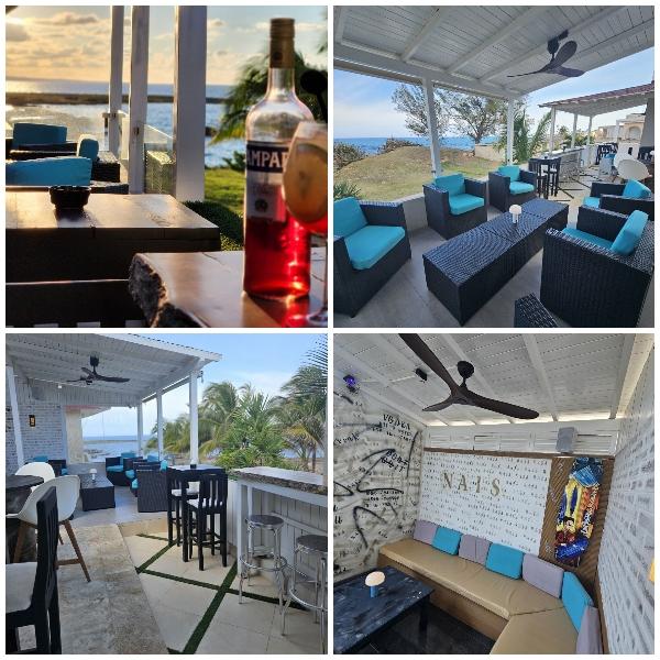 Planta alta : terraza con sus mesas para servicio de restaurante parte climatizada y bar con una excelente vista al mar ,tanto de día como de noche.