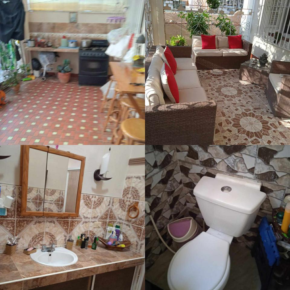 4 cuartos , dos baños , carpoch y garage con mesanine jardín y portal sala y comedor cocina terraza y patio cementado con lavadero y meseta agua fría y caliente gas de la calle 110 y 220 toda enrejada llegar y vivir