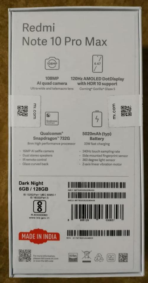 Xiaomi redmi note 10 pro max 6gb ram, 128 gb almacenamiento 108 mega pixeles