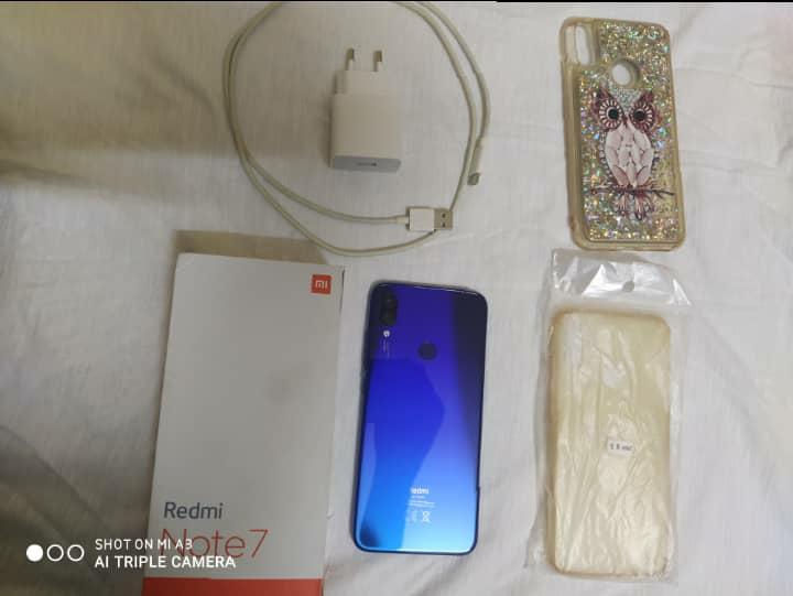 Redmi Note 7 impecable 4RAM/64GB con su caja y todos sus accesorios. Lo doy con cover de silicona original del telef y uno extra.