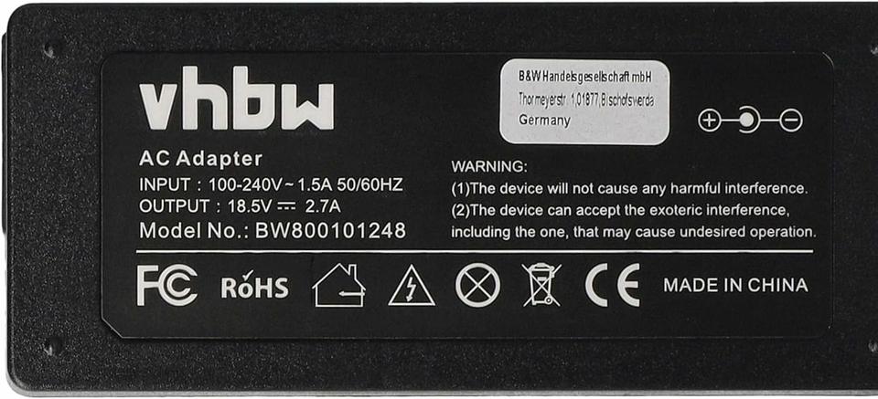 Entrada CA: 100–240 V | Salida CC: 18,5 V | Frecuencia de frecuencia de entrada: 50/60 Hz | Longitud total: 200 cm | Color: negro