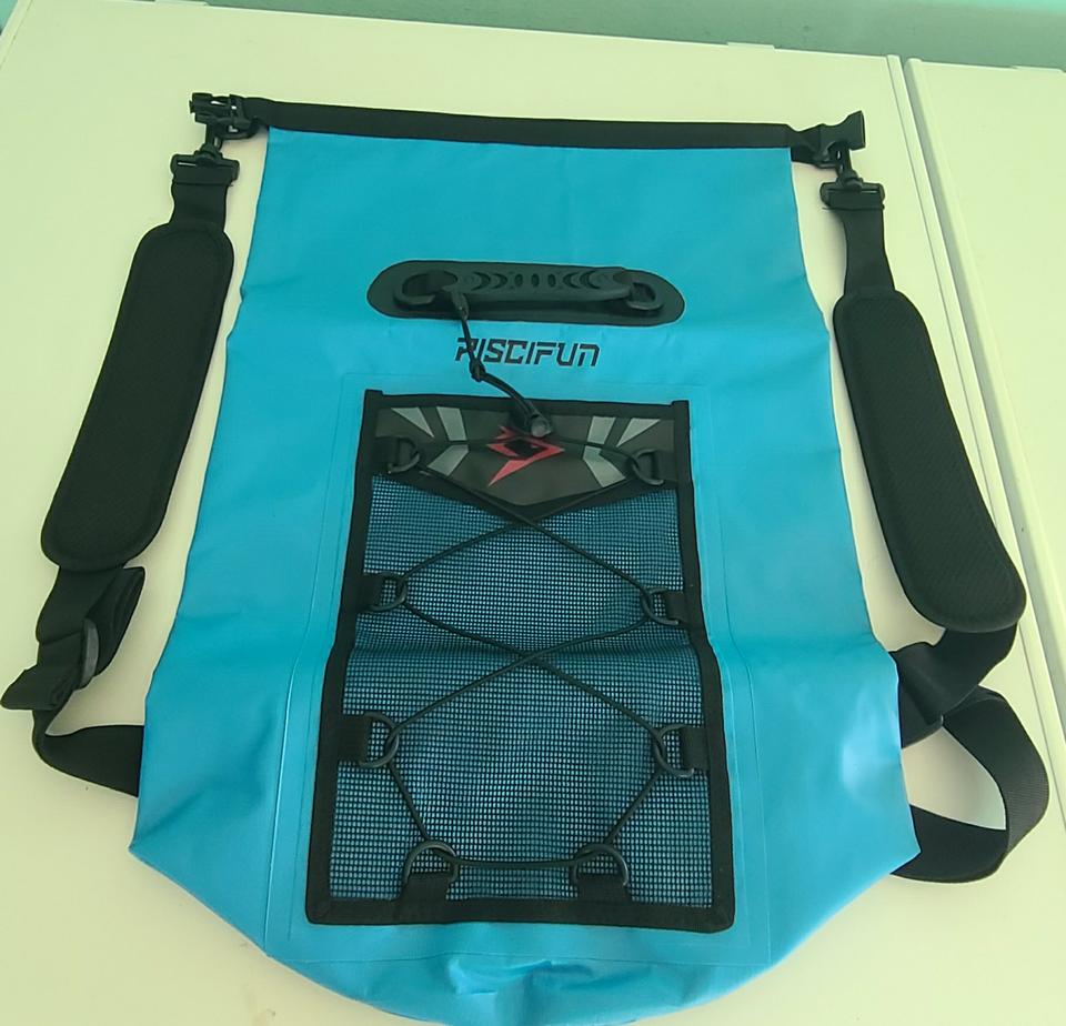 -El segundo en un bolso seco modo mochila marca PICIFUN de 20 litros. Tiene tres agarres diferentes y también flota por sus características a 45 dólares. Este bolso puede ser usado para guardar las cosas si vas a bucear, hacer Snorkel, Kayak, Padel o cualquier otra actividad marina.