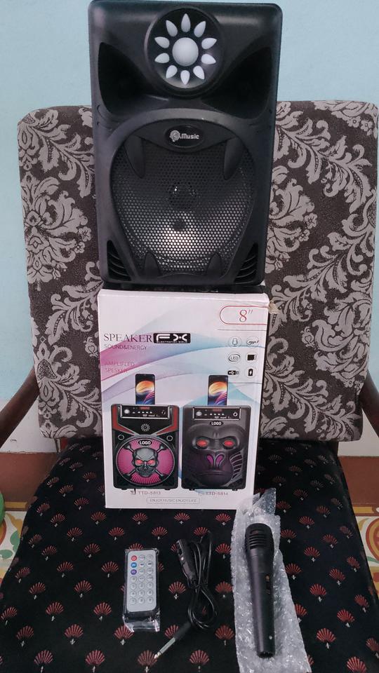 Vendo bocina de audio bluetooth con radio y su microfono de karaoke incluidos. Tiene ademas, luces de animacion. El precio de venta son 100 USD o el equivalente en CUP al cambio del dia.