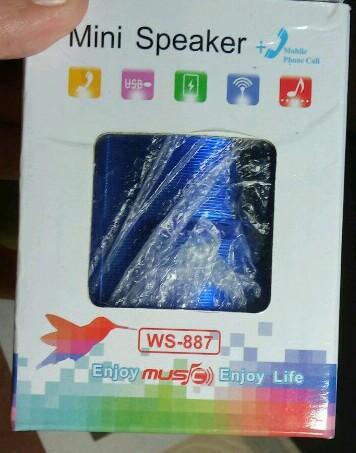 Mini Speaker nuevo en su caja de color azul.