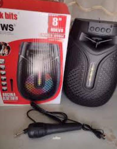 Vendo bocina bluetooth RFR054 nueva en su caja con microfono para karaoke, entrada usb, cable cargador de energia sin el cargador, Bluetooth, y luz decorativa tipo spit light de colores.