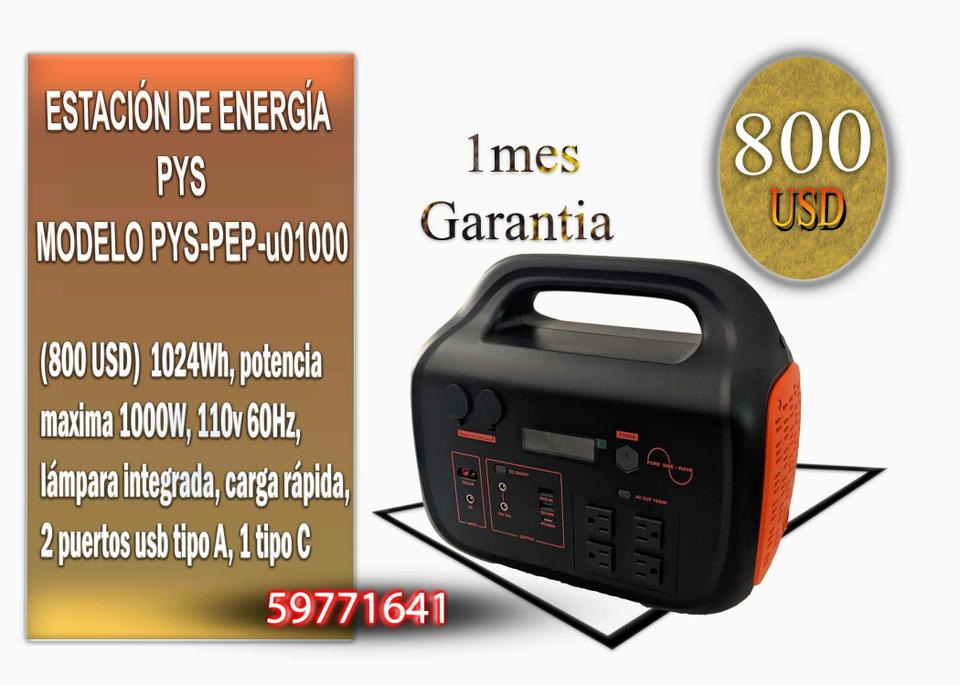 PYS Modelo Pys-Pep-u01000. -Batería de iones de litio de alta calidad Lifepo4. - 5 funciones de protección que hacen que sea más seguro de usar. - 3 modos de carga, cargar desde la pared, carga solar y carga en el coche. Tiene 4 tomas de salida de corriente, USB 2.0, USB 3.0 y USB tipo C. Estas son las características de la más chiquita la naranja y negra.