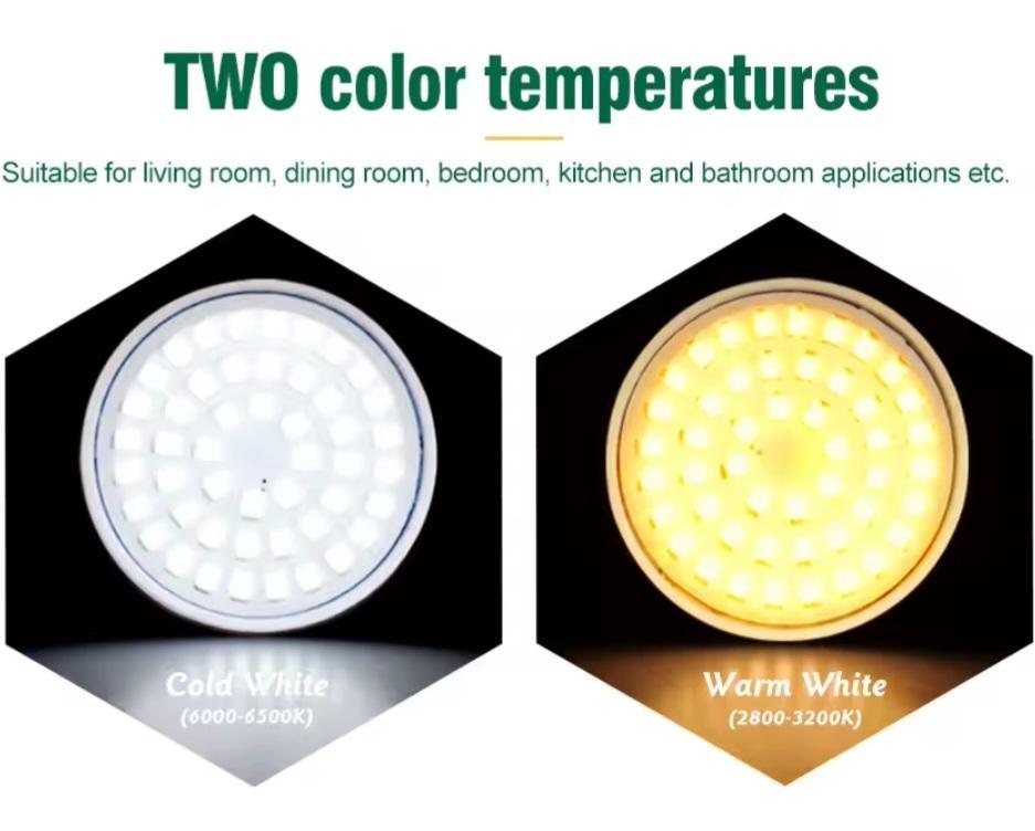 Lámpara tipo Dicroica 54 LED, E27, luz cálida y/o luz blanca.