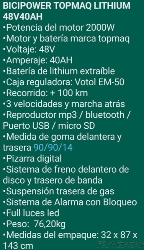 Bicimoto Topmaq 40 amp , 1350 usd, 2000 w, características en las fotos, 55004836