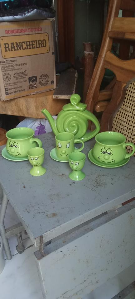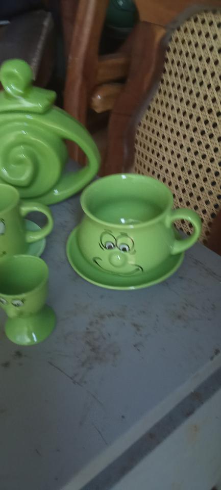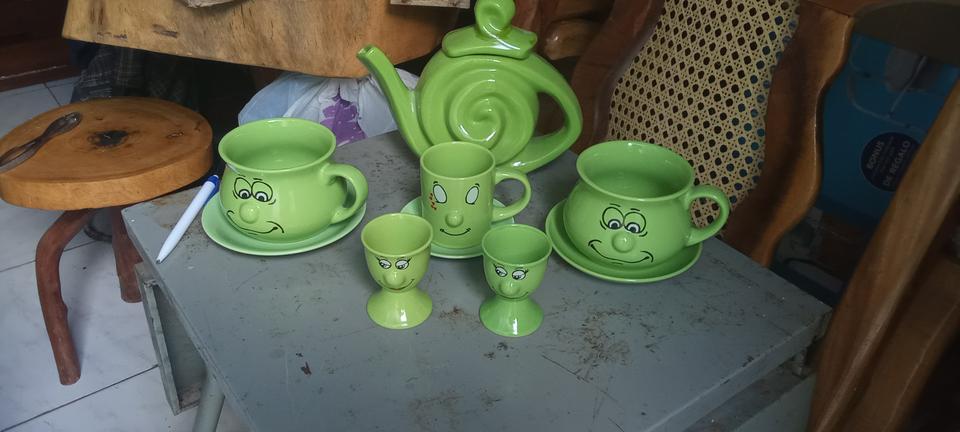 Vendo juego de tazas de café con leche color verde 2 grandes, una más pequeña y 2 copitas con su tetera en 2000 mn me puede localizar al 52000588 si no hay cobertura escribir por y
