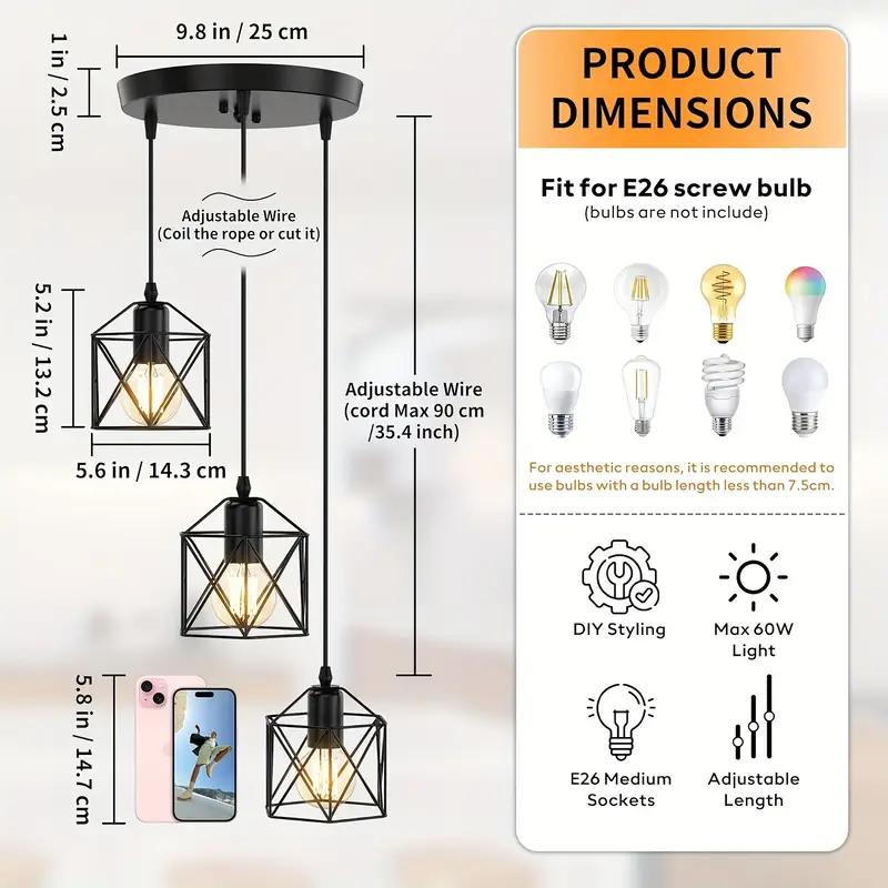 Lámparas Colgantes Industrial Vintage Ajustables (2 modelos) - $25