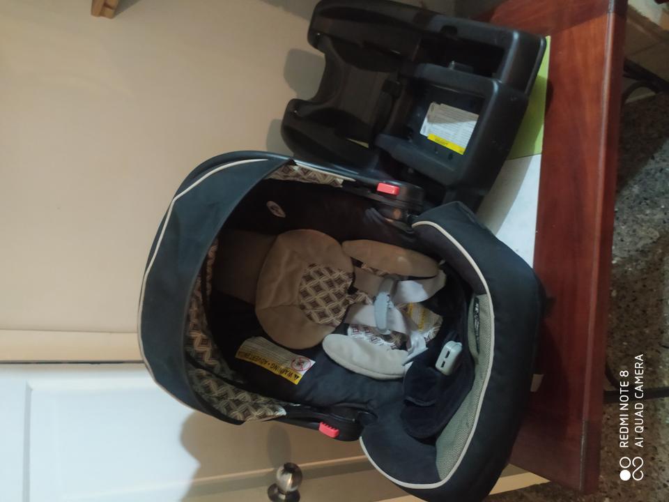 Carsit con accesorios para mayor confort del bb con su base y todos los cinturones para su seguridad marca Graco