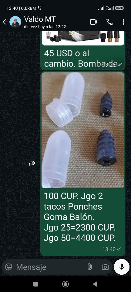 100 CUP. Jgo 2 tacos Ponches Goma Balón.