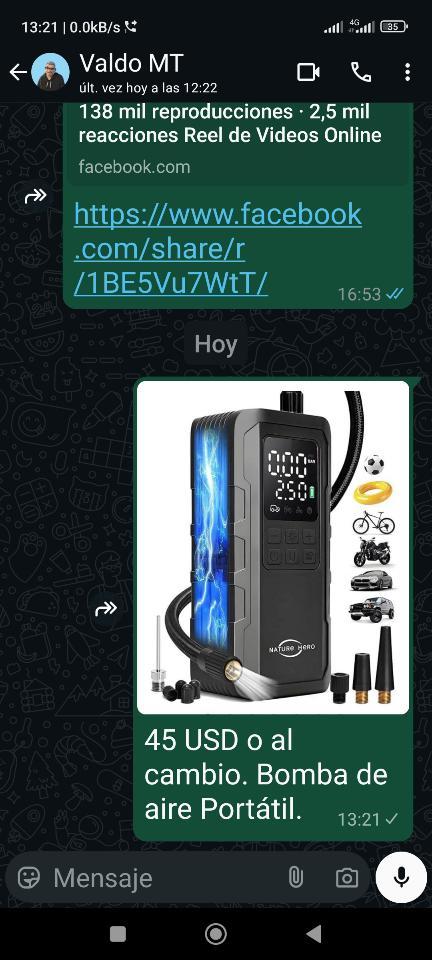 40 USD o al cambio. Bomba de Aire Portátil Multiusos, con sus accesorios.