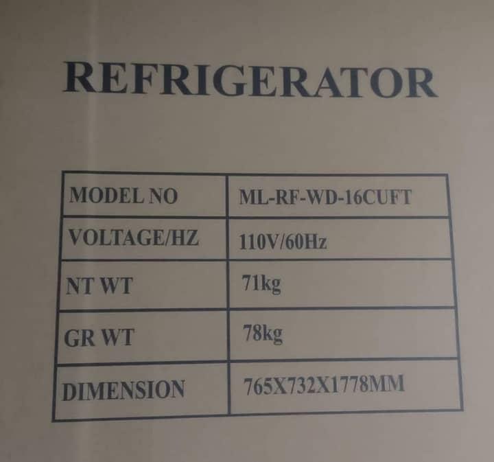 Refrigerador 16 pies congelación seca Milexus en 1000 usd,