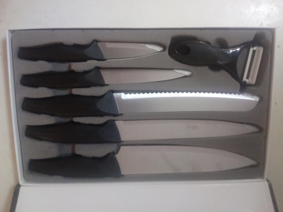 Juego de cuchillos acero fino. 6 piezas incluye pelador de viandas.