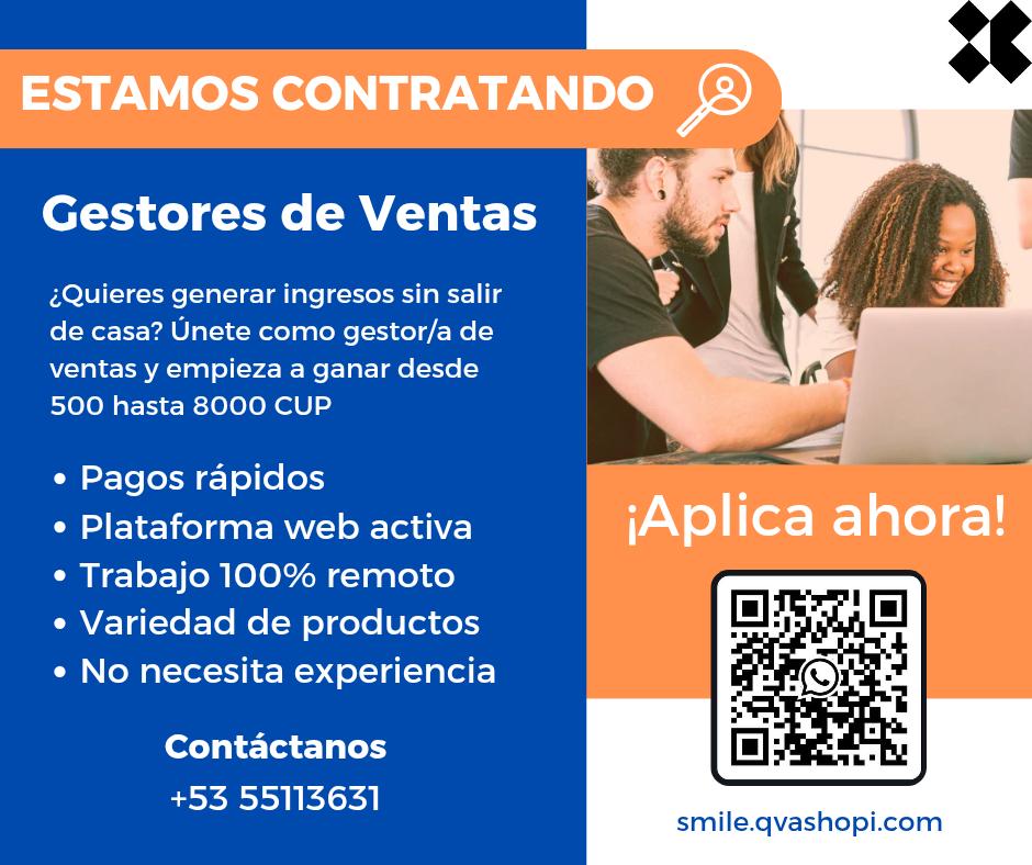 Únete como gestor/a de ventas y empieza a ganar desde 500 hasta 8000 CUP