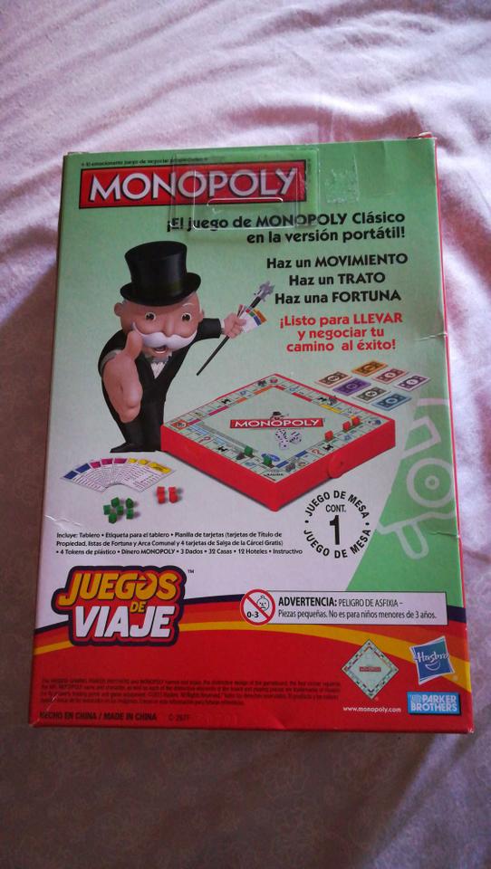 Nuevo en su caja, usted será el primero en usarlo, más pequeño q el original pero igual cuenta c todas las tarjetas, billetes y propiedades. Idioma español.