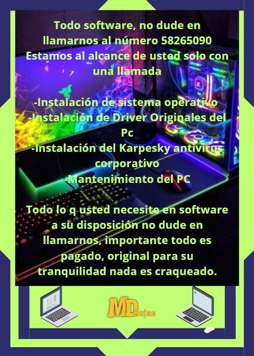 Todo lo q usted necesite en software a su disposición no dude en llamarnos, importante